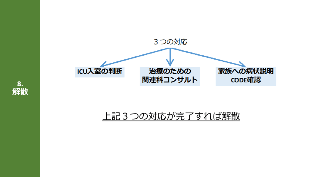 主治医への連絡と解散の流れ