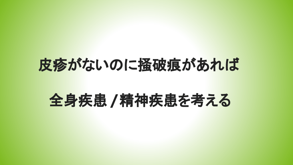 #4. 皮疹がない に掻破痕があれ 全身疾患 /精神疾患を考える