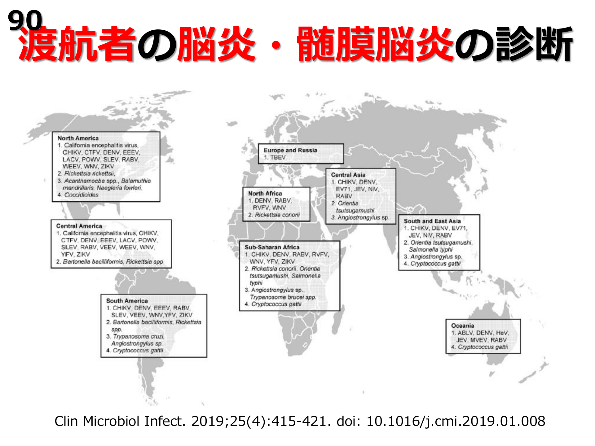 #114. 90 渡航者の脳炎・髄膜脳炎の診断 Clin Microbiol Infect. 2019;25(4):415-421. doi: 10.1016/j.cmi.2019.01.008