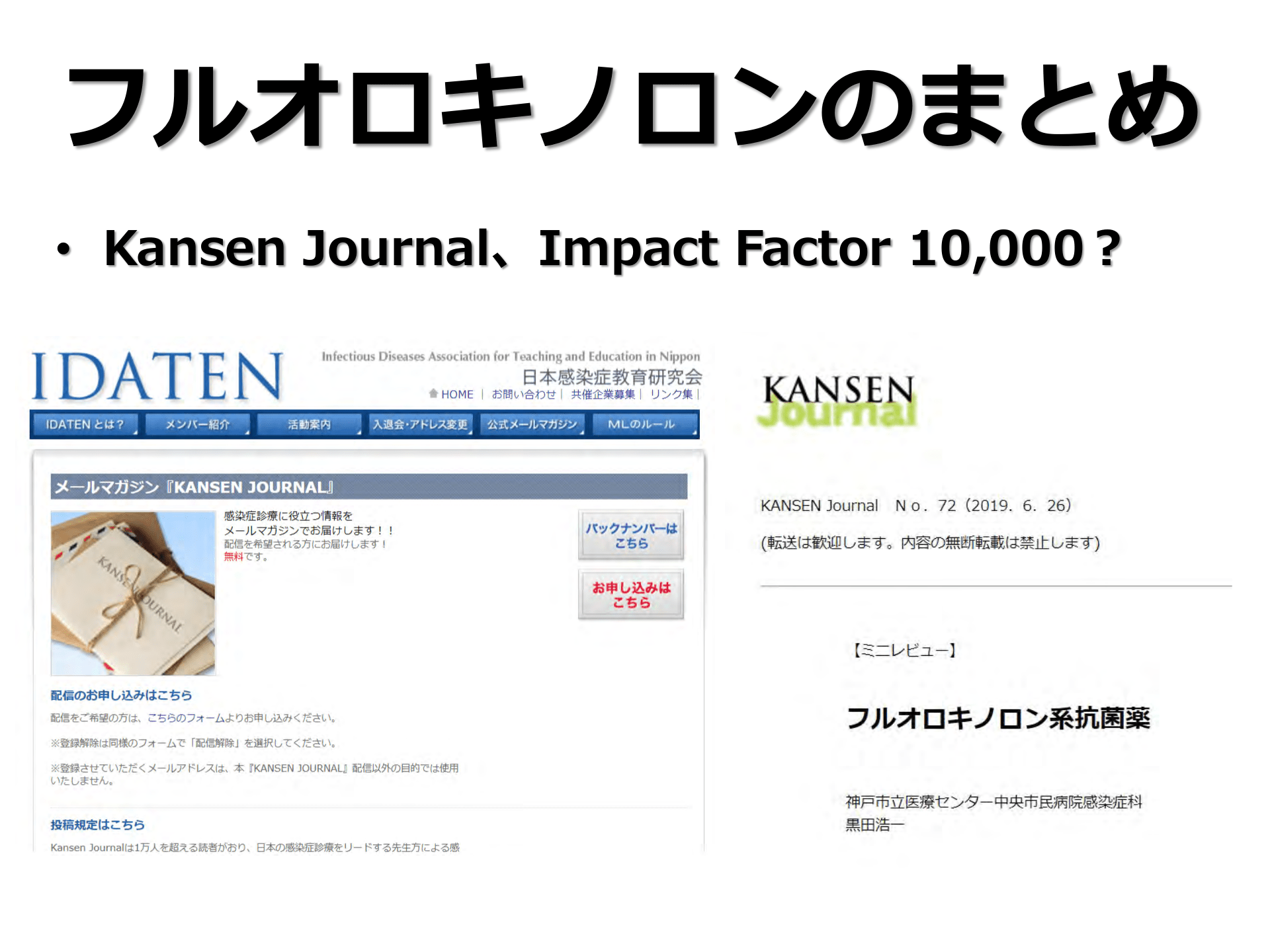 #134. フルオロキノロンのまとめ • Kansen Journal、Impact Factor 10,000?