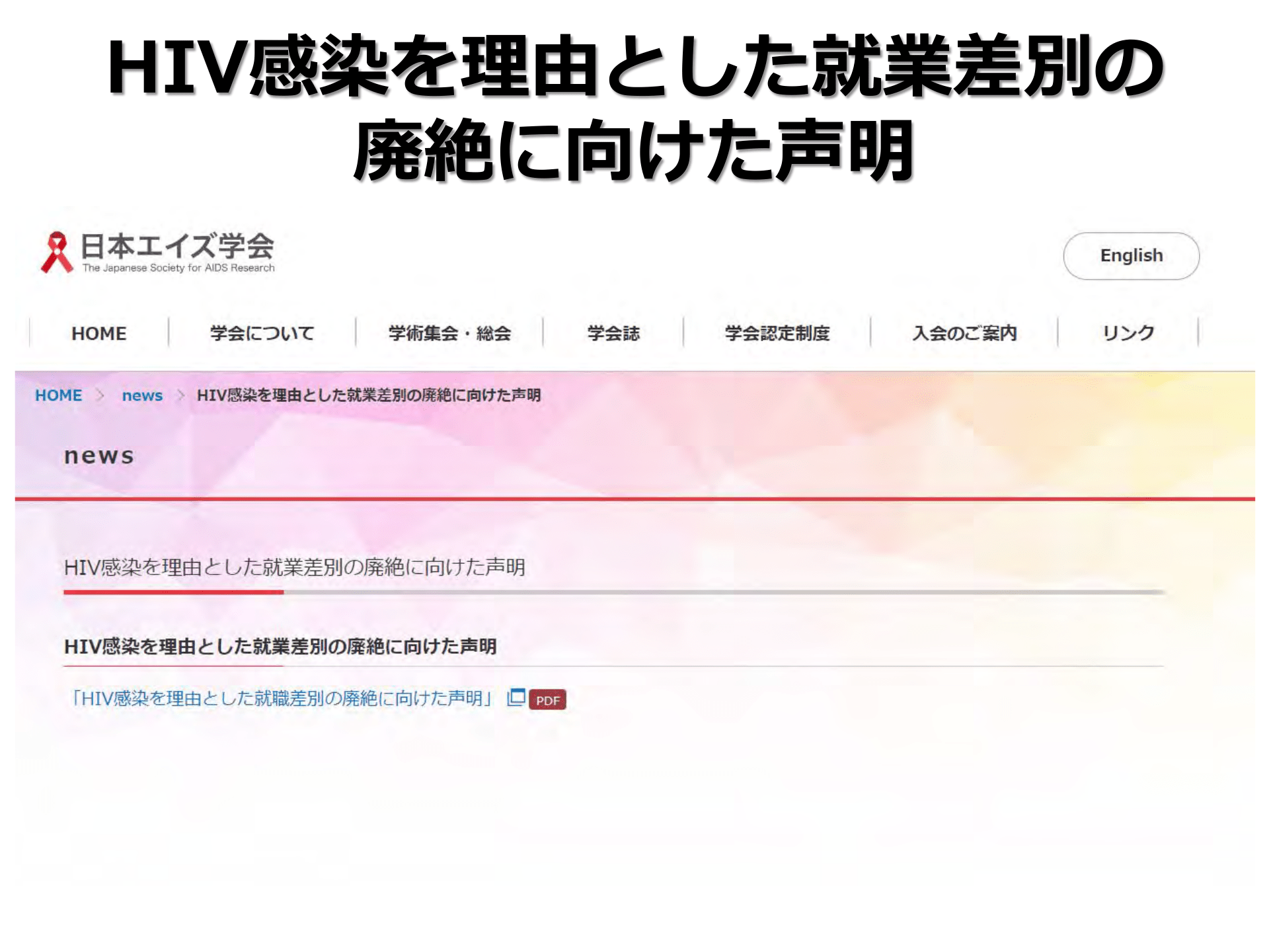 #147. HIV感染を理由とした就業差別の 廃絶に向けた声明