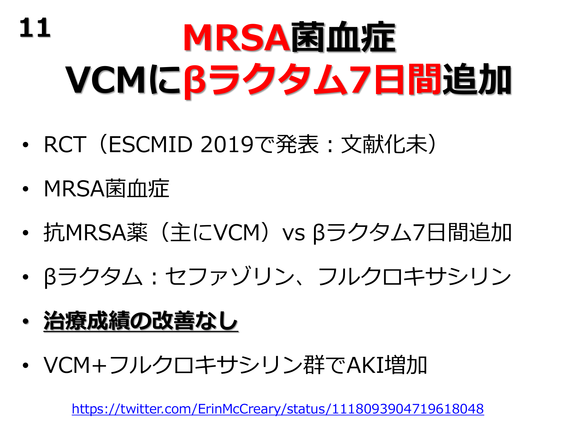 MRSA菌血症の治療におけるβラクタムの追加効果