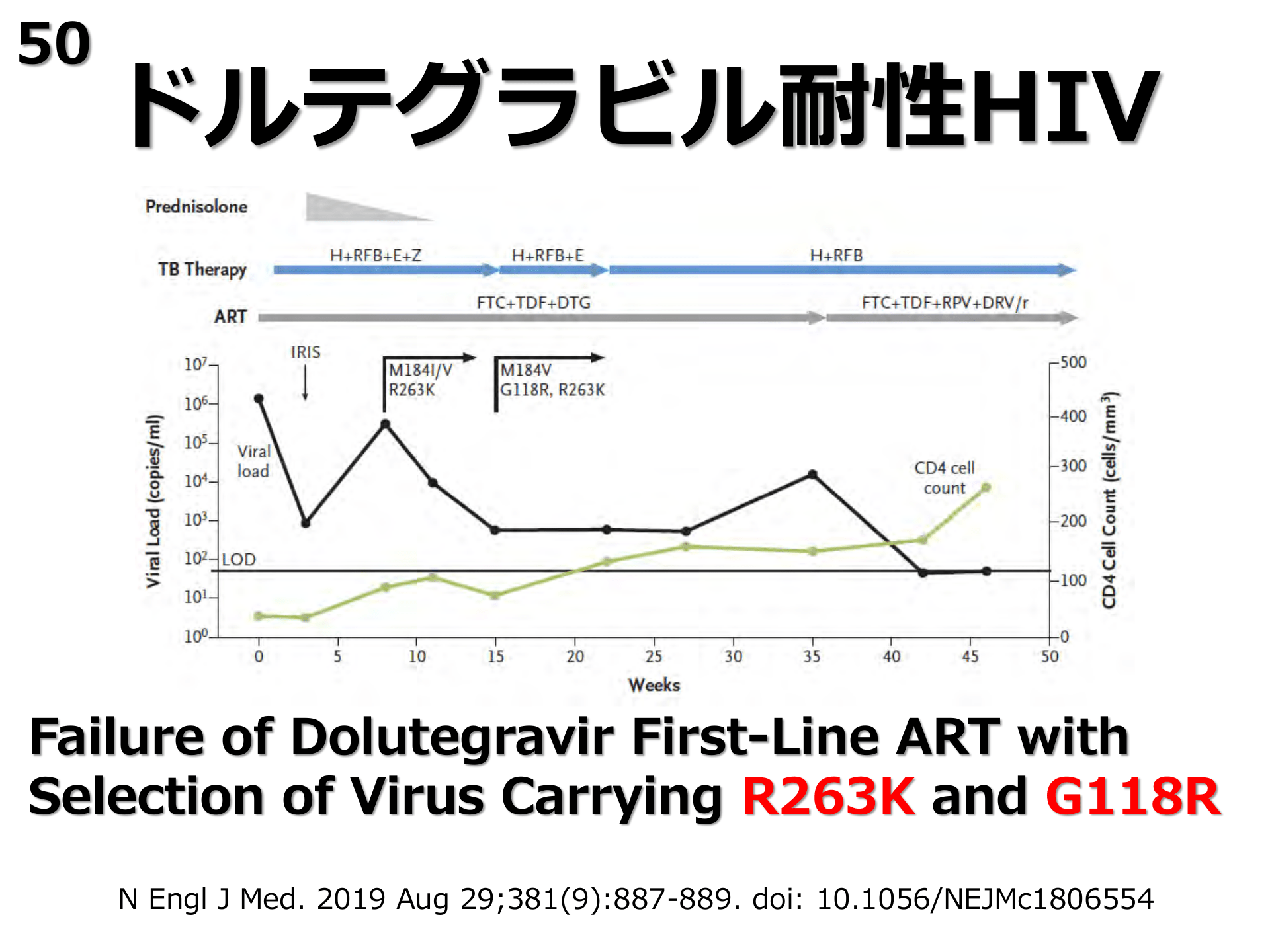 #66. 50 ドルテグラビル耐性HIV Failure of Dolutegravir First-Line ART with Selection of Virus Carrying R263K and G118R N Engl J Med. 2019 Aug 29;381(9):887-889. doi: 10.1056/NEJMc1806554