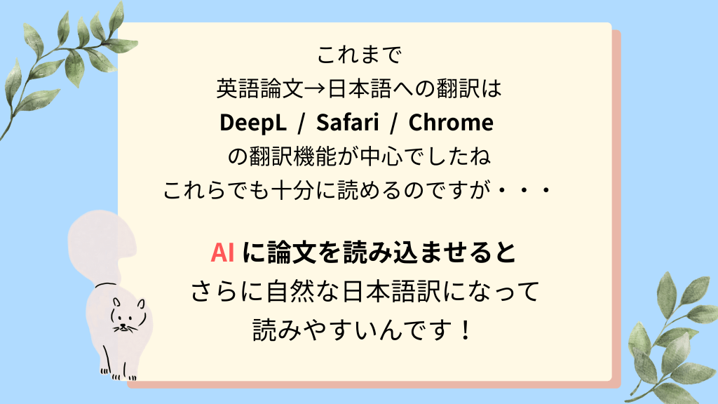 AIを使った翻訳はとても便利です。Google日本語入力でできたような直訳だけでなく、内容を質問したり、図解を作成したりできます。それぞれのAIサービスの特徴を理解して、使いこなしていきましょう。