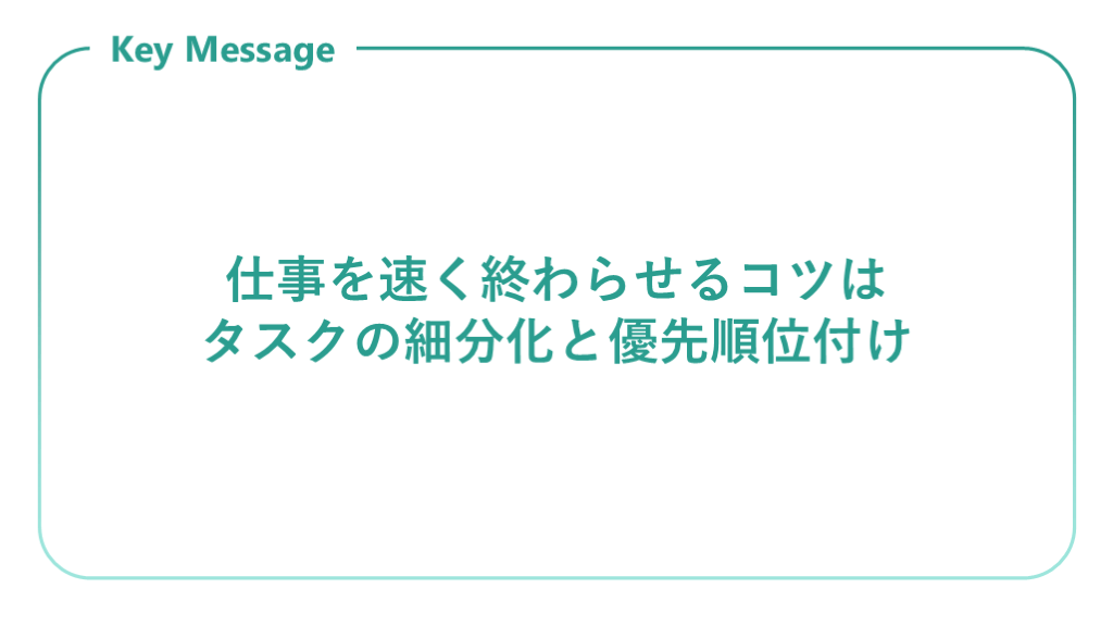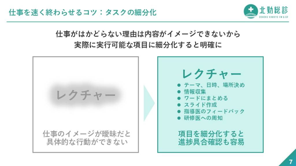 #7. 仕事を速く終わらせるコツ:タスクの細分化 仕事がはかどらない理由は内容がイメージできないから