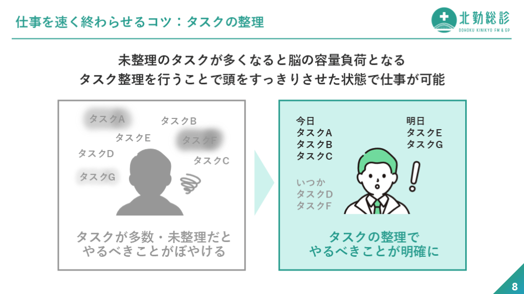 #8. 仕事を速く終わらせるコツ:タスクの整理 未整理のタスクが多くなると脳の容量負荷となる