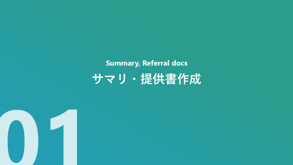 #25. 01 サマリ・提供書作成 Summary, Referral docs