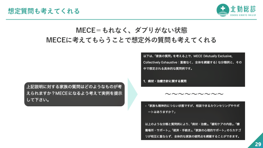 MECEに考えてもらうことで想定外の質問も考えてくれる 29 〜〜〜〜〜〜〜〜〜