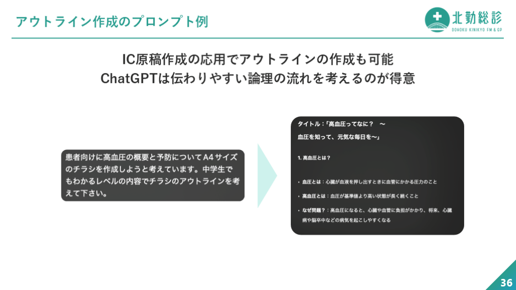#36. アウトライン作成のプロンプト例 IC原稿作成の応用でアウトラインの作成も可能