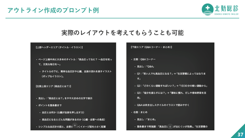#37. アウトライン作成のプロンプト例 実際のレイアウトを考えてもらうことも可能 37