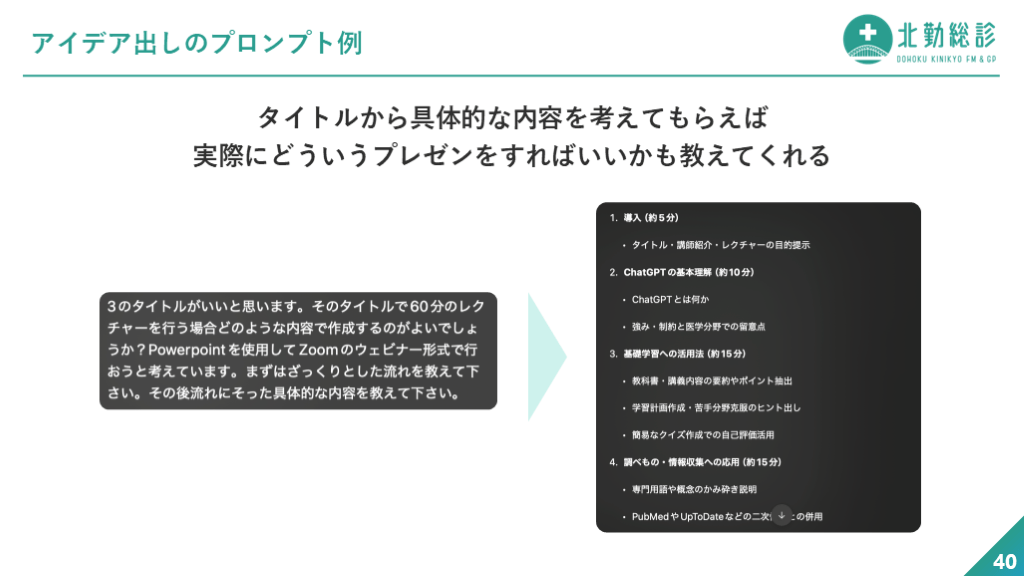 #40. アイデア出しのプロンプト例 タイトルから具体的な内容を考えてもらえば