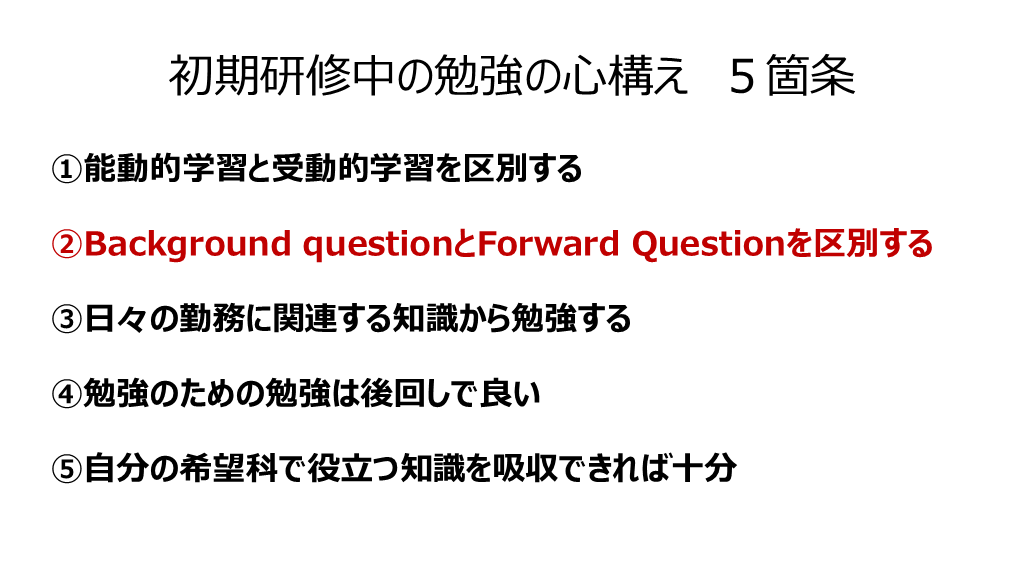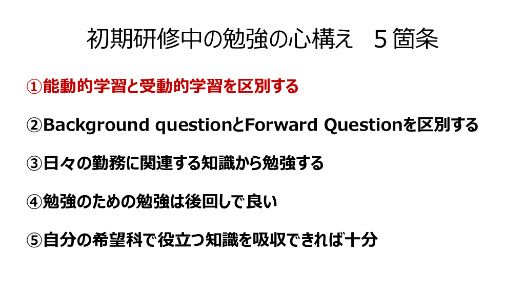#16. 初期研修中の勉強の心構え 5箇条 ①能動的学習と受動的学習を区別する