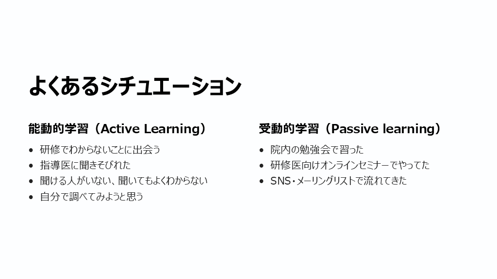 #33. 初期研修中の勉強の心構え 5箇条 ①能動的学習と受動的学習を区別する