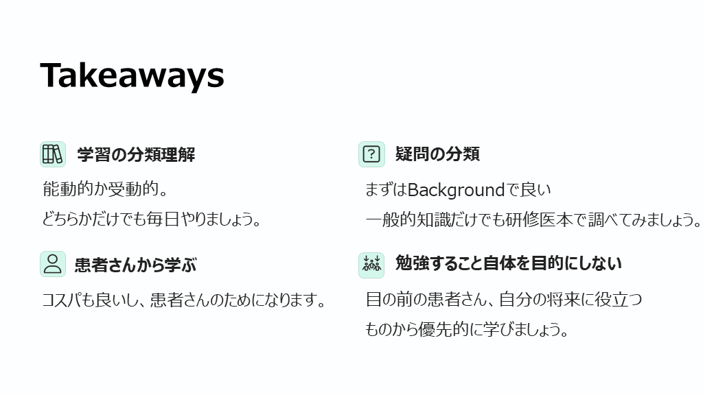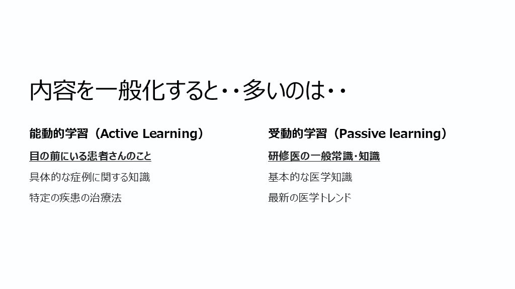 #25. 初期研修中の勉強の心構え 5箇条 ①能動的学習と受動的学習を区別する