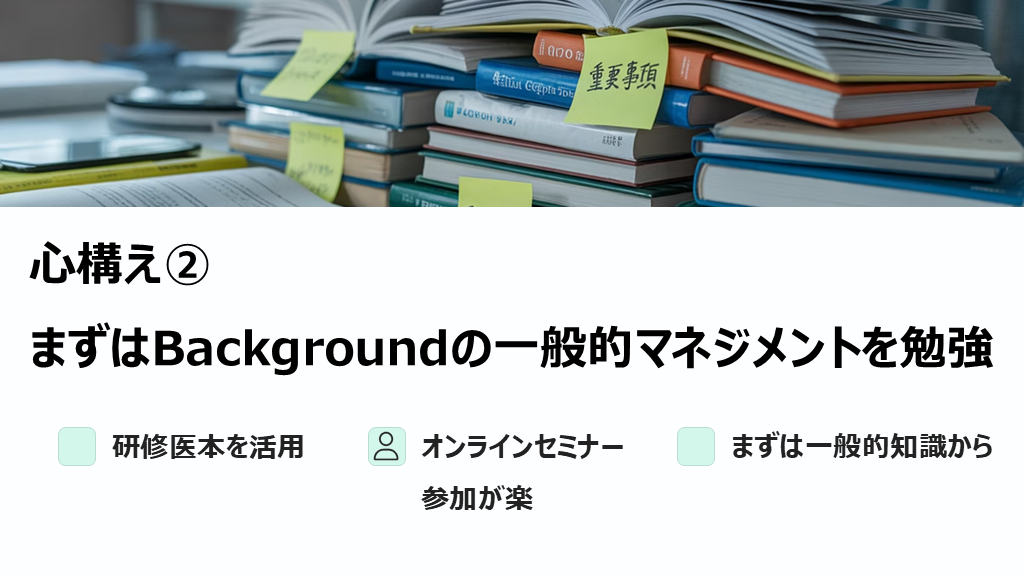 まずはBackgroundの一般的マネジメントを勉強 研修医本を活用 オンラインセミナー