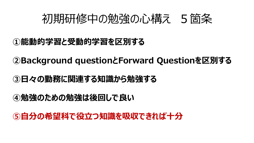 #5. 研修医に求められる勉強とは? ①全診療科で最低限必要な知識の習得