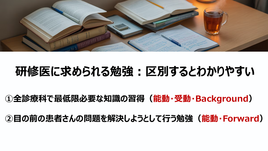 #37. 研修医に求められる勉強:区別するとわかりやすい ①全診療科で最低限必要な知識の習得(能動・受動・Background)