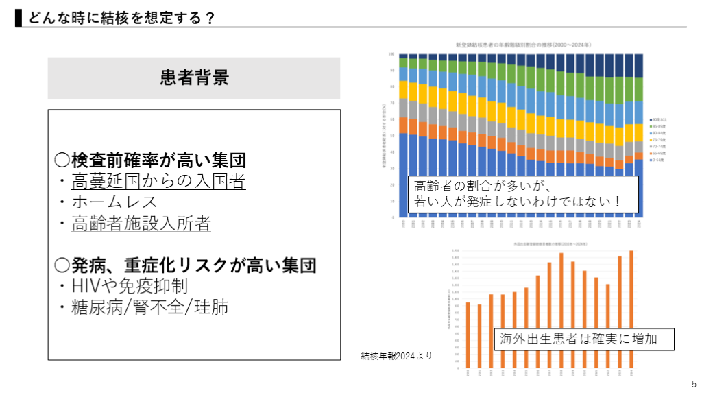 #5. 5 どんな時に結核を想定する? ○検査前確率が高い集団・高蔓延国からの入国者