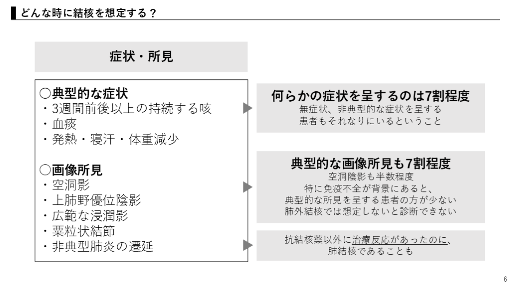 #6. 6 どんな時に結核を想定する? ○典型的な症状