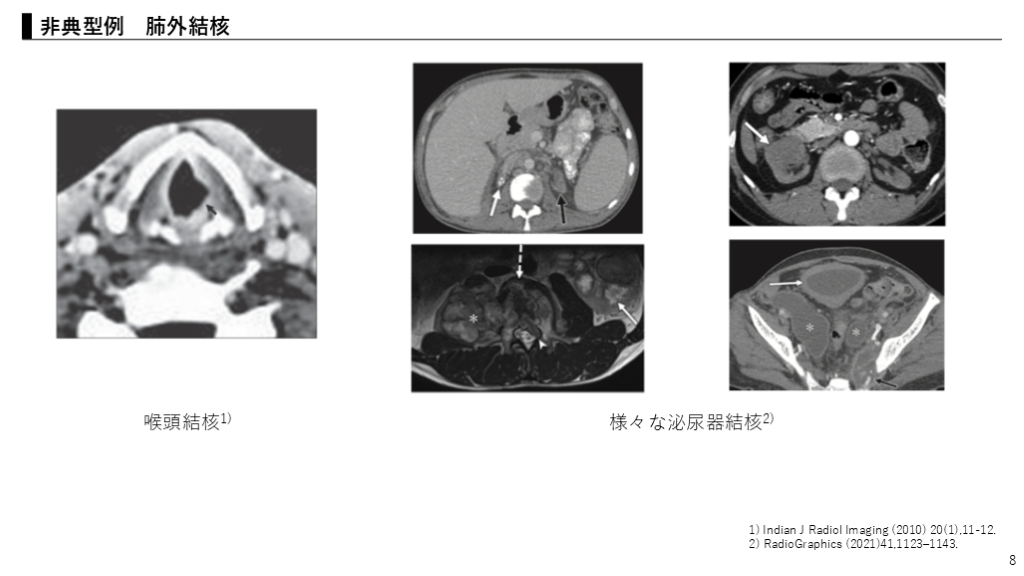 #8. 8 非典型例 肺外結核 喉頭結核1) 様々な泌尿器結核2) 1) Indian J Radiol Imaging (2010) 20(1),11-12.