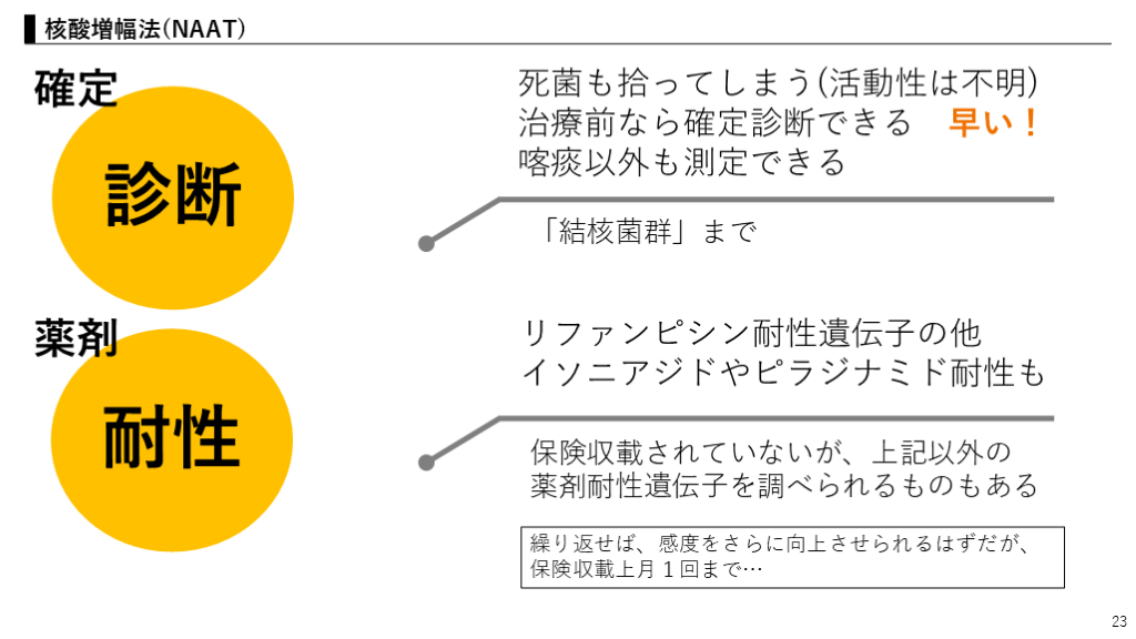 #23. 23 診断 確定 核酸増幅法(NAAT) 死菌も拾ってしまう(活動性は不明)