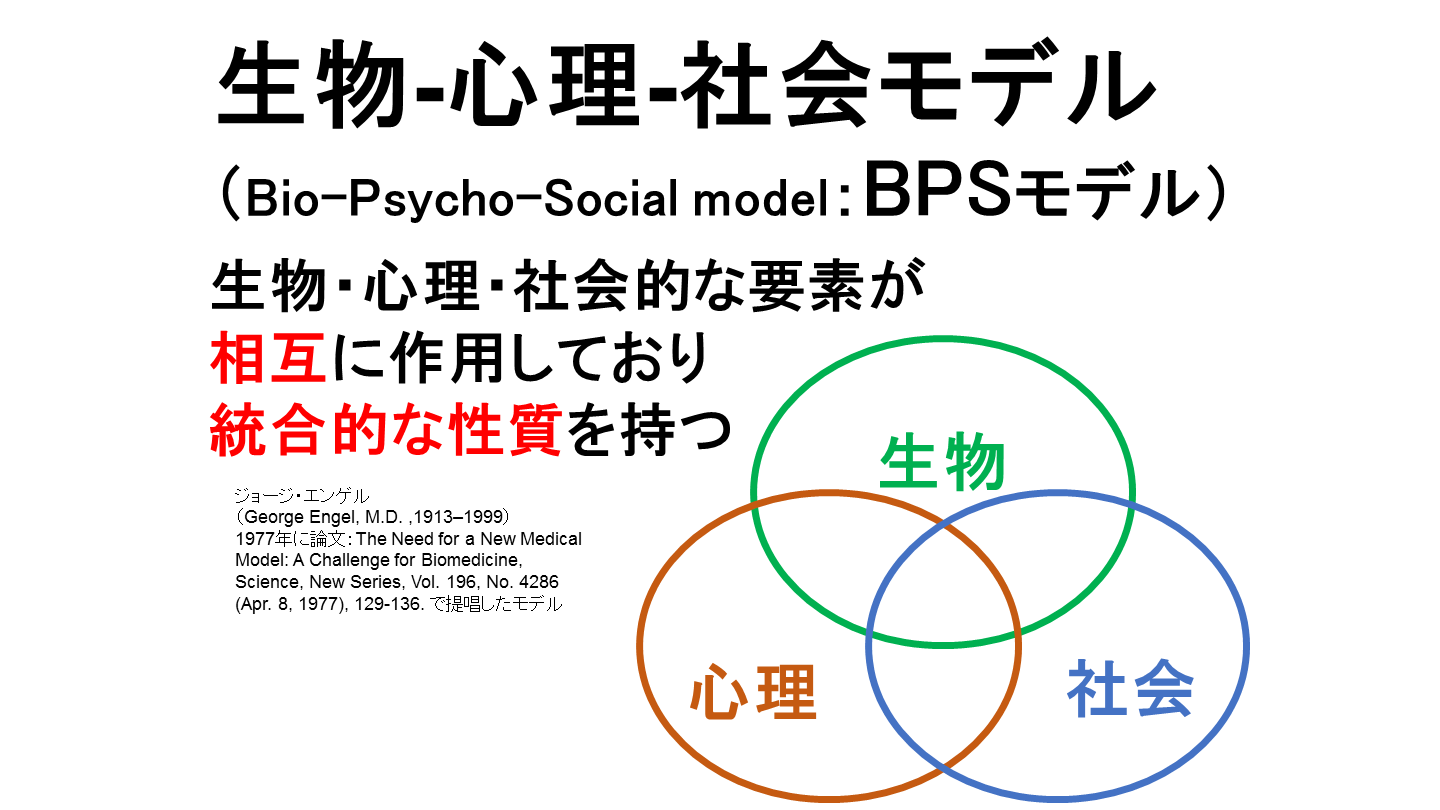 #16. 生物-心理-社会モデル(Bio-Psycho-Social model:BPSモデル) 生物・心理・社会的な要素が