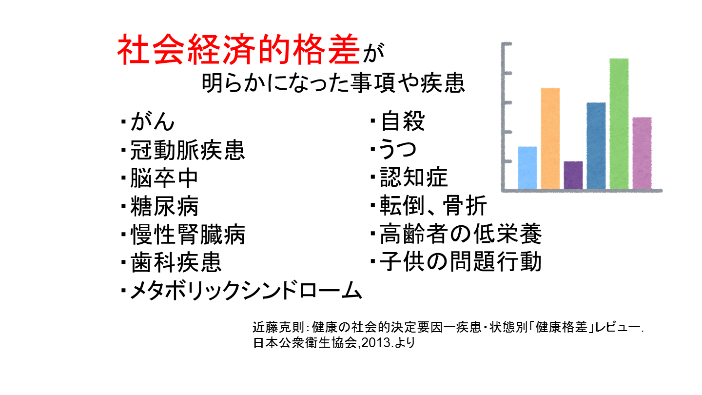 近藤克則:健康の社会的決定要因ー疾患・状態別「健康格差」レビュー.日本公衆衛生協会,2013.より