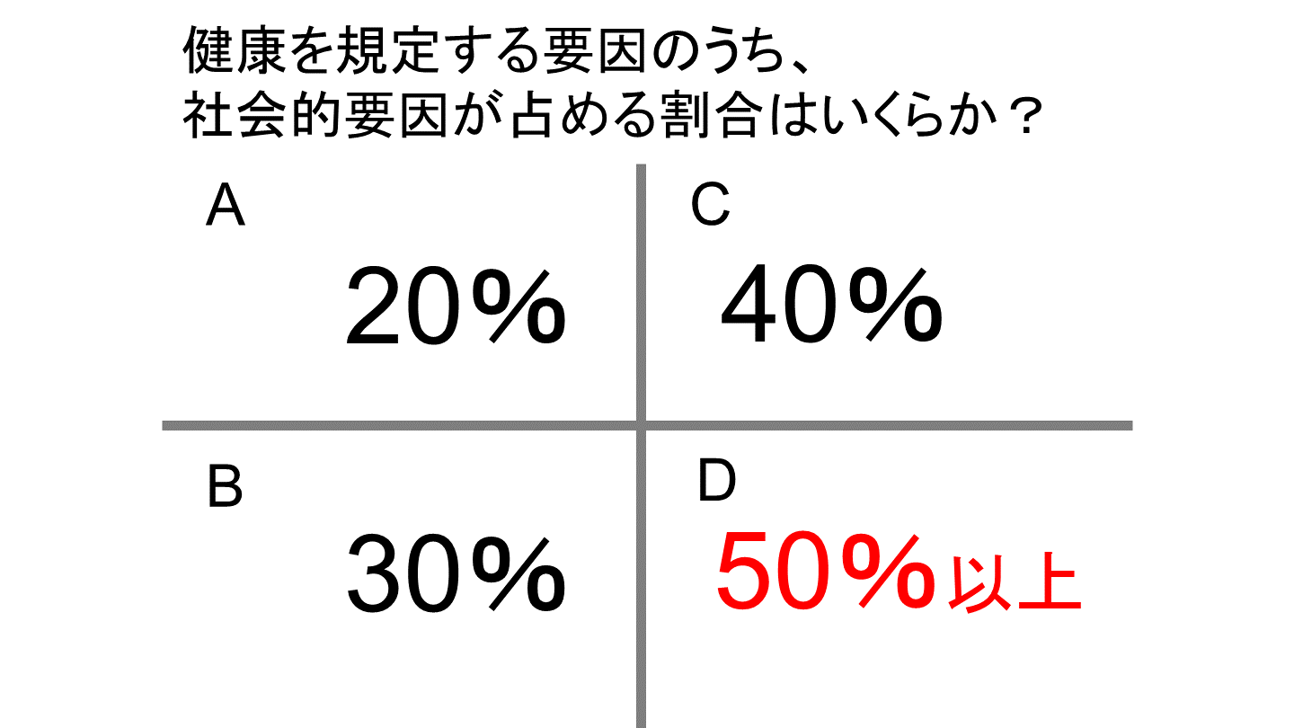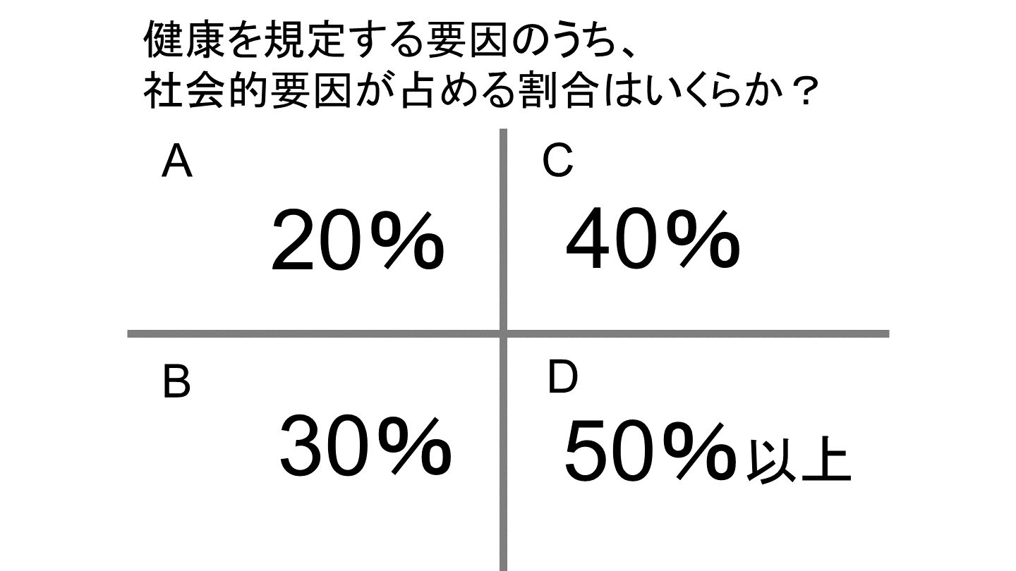 社会的要因が占める割合はいくらか? A B C D 20% 30% 40% 50%以上