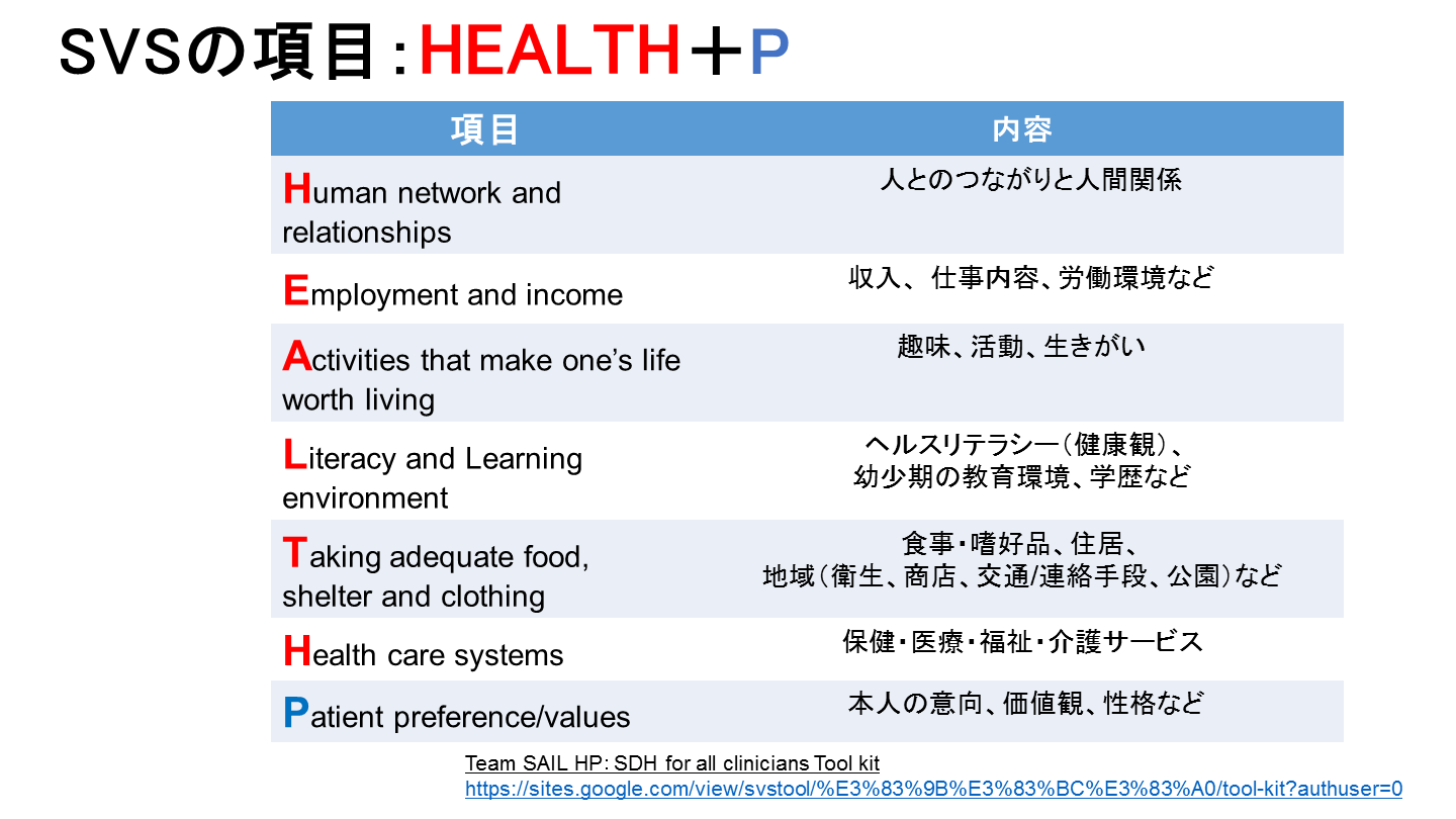 Social Vital Signs(SVS) 社会的要因をスクリーニング