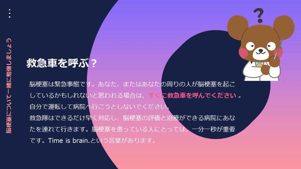 TIME     時間– 脳梗塞治療では時間は非常に重要です。