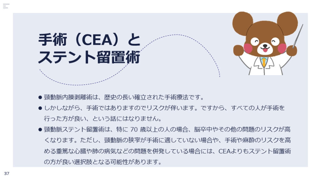 ステント留置術 頸動脈内膜剥離術は、歴史の長い確立された手術療法です。