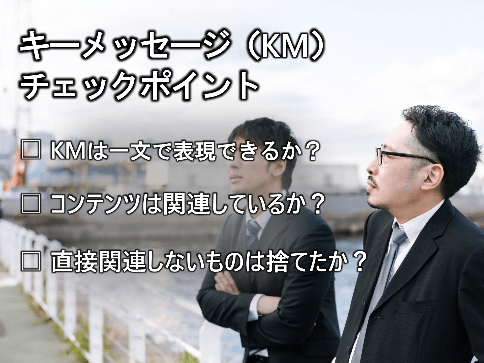 #8. キーメッセージ(KM) チェックポイント □ KMは一文で表現できるか? □ コンテンツは関連しているか? □ 直接関連しないものは捨てたか? 8