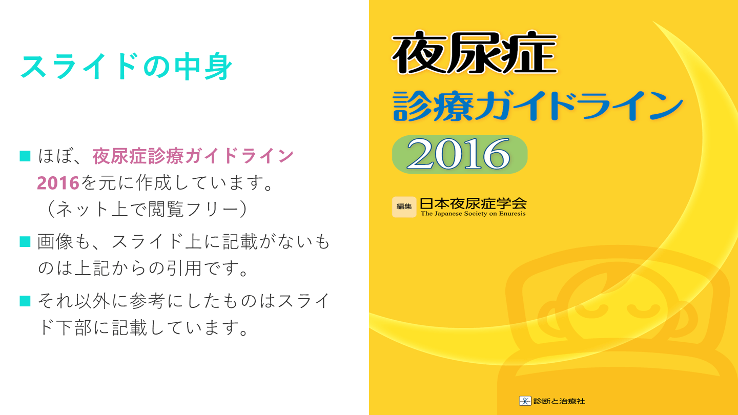 #3. スライドの中身 ほぼ、夜尿症診療ガイドライン2016を元に作成しています。(ネット上で閲覧フリー)
