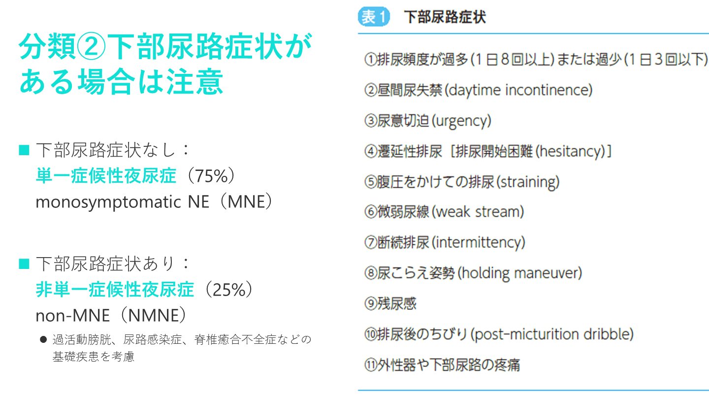 下部尿路症状あり:非単一症候性夜尿症(25%)non-MNE(NMNE)