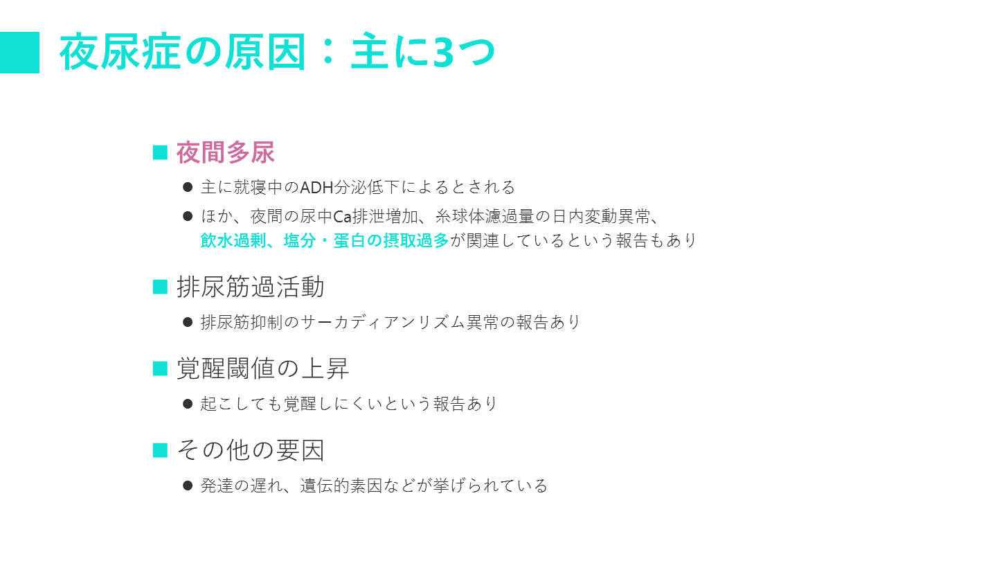 #11. 夜尿症の原因:主に3つ 夜間多尿