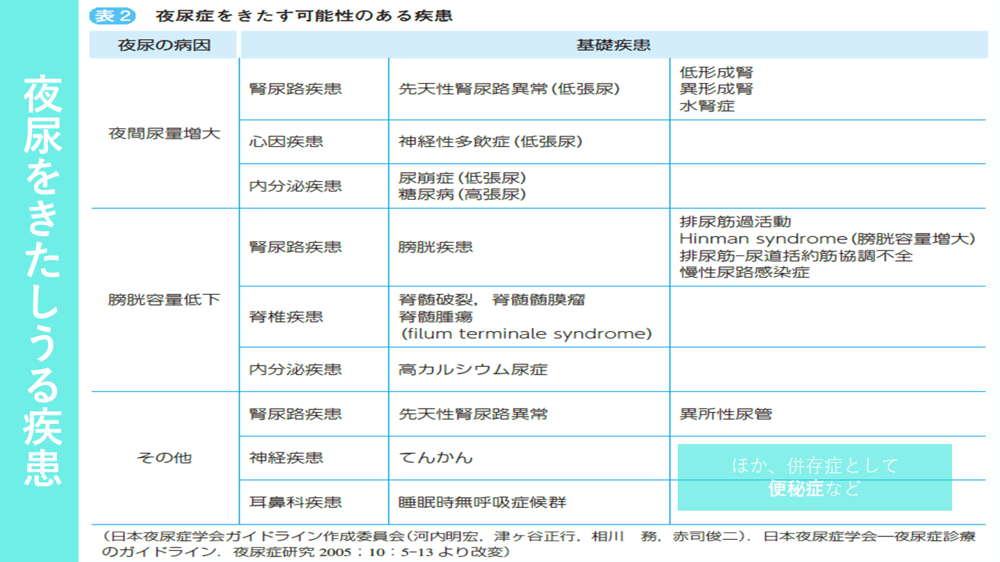 便秘症など 夜尿をきたしうる疾患