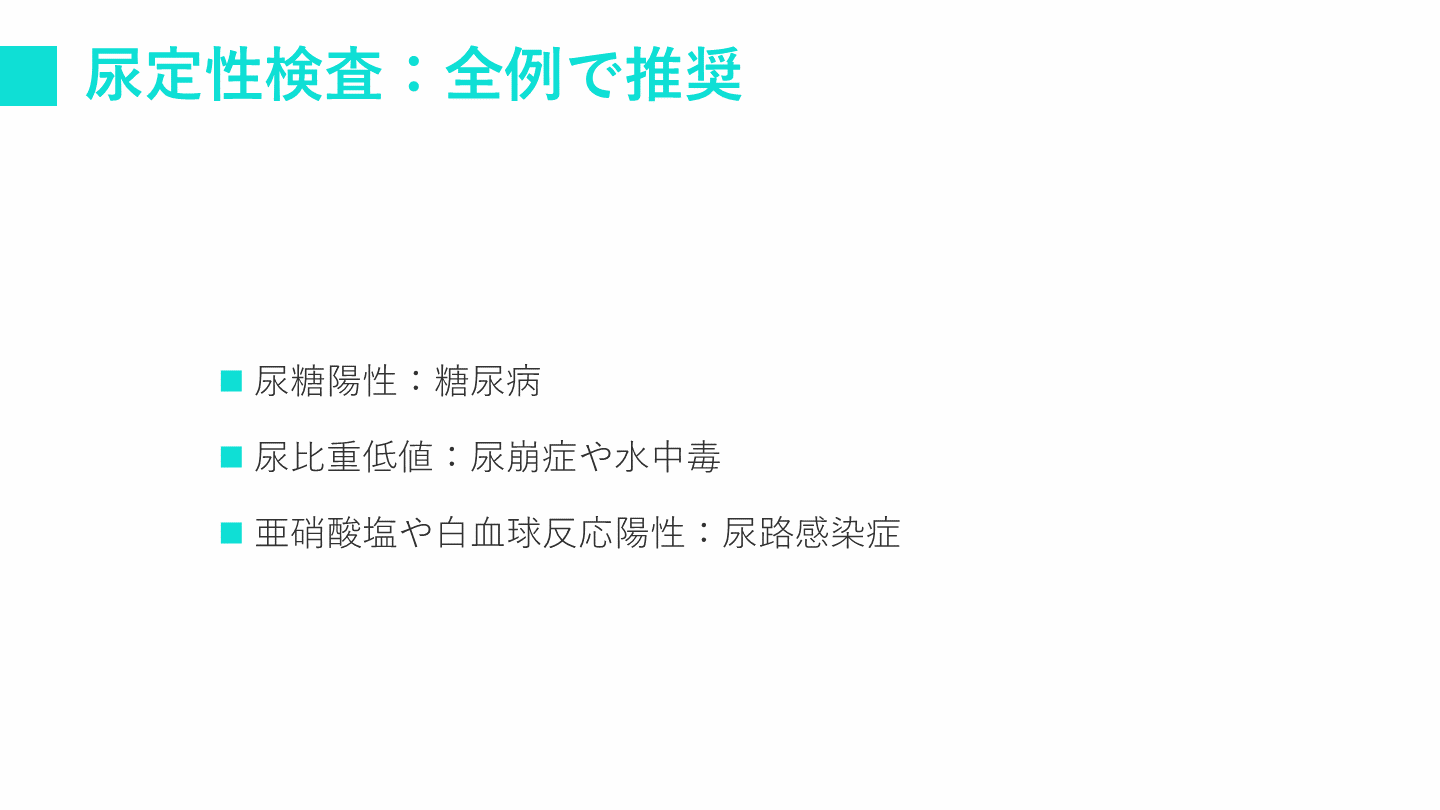 #16. 尿定性検査:全例で推奨 尿糖陽性:糖尿病