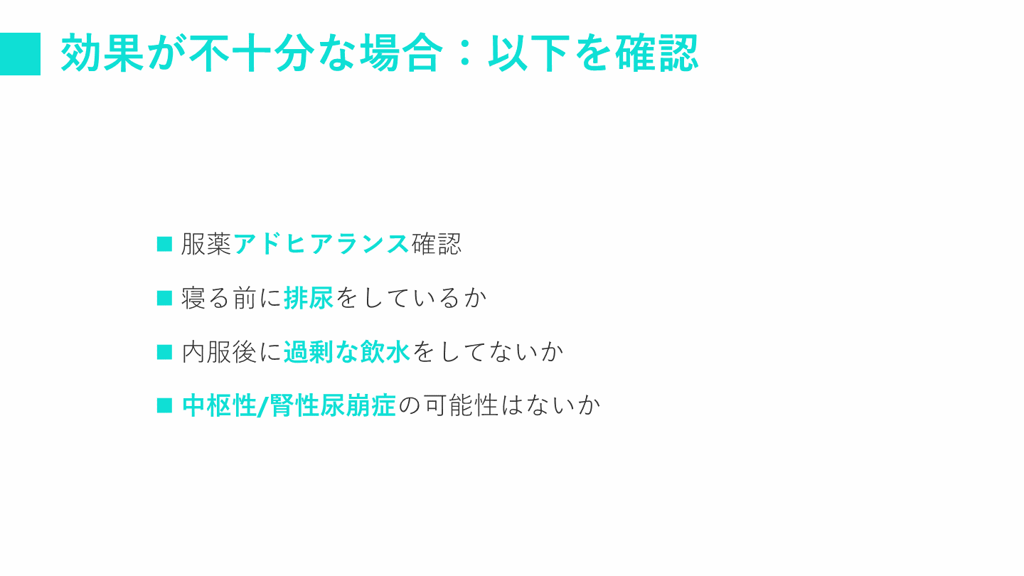 プライマリケア医として、生活指導やデスモプレシン投薬に習熟しておく。