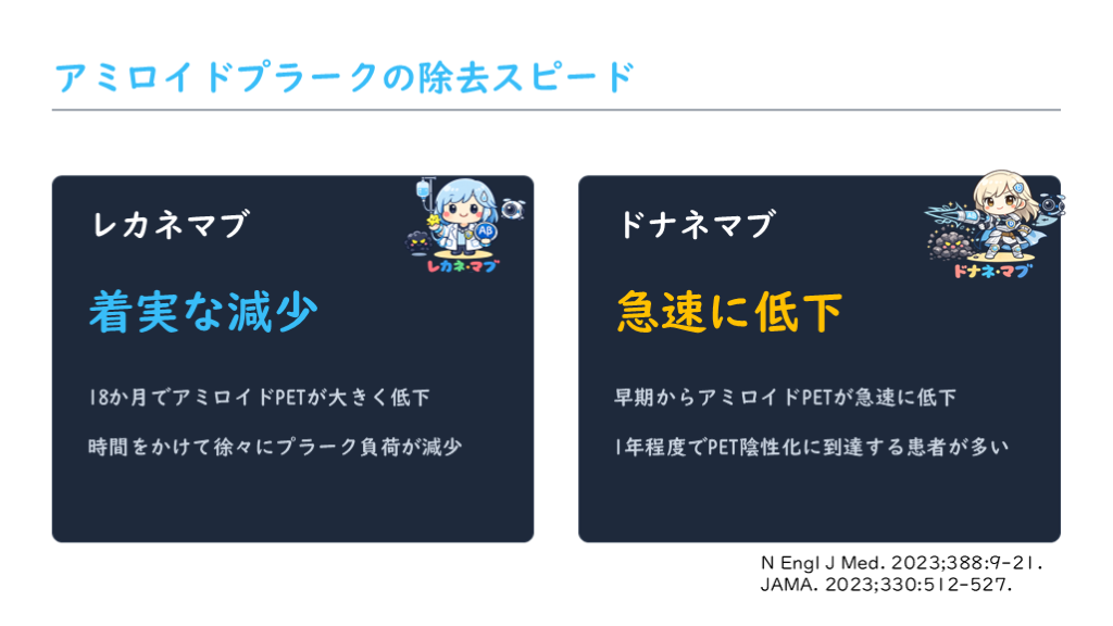 両薬剤の臨床効果とアミロイドプラーク除去