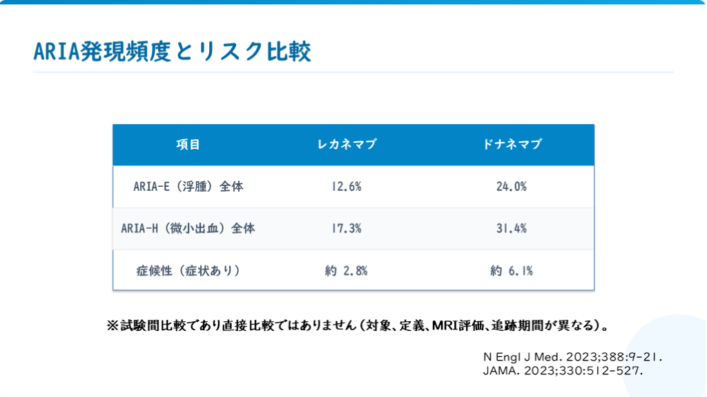 JAMA. 2023;330:512-527. ※試験間比較であり直接比較ではありません(対象、定義、MRI評価、追跡期間が異なる)。