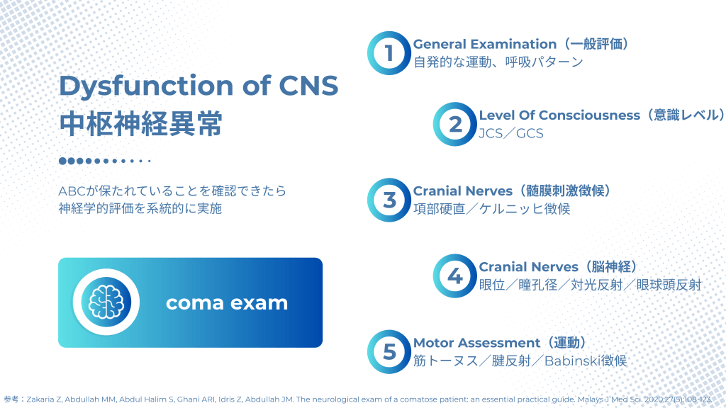 Zakaria Z, Abdullah MM, Abdul Halim S, Ghani ARI, Idris Z, Abdullah JM. The neurological exam of a comatose patient: an essential practical guide. Malays J Med Sci. 2020;27(5):108-123.
