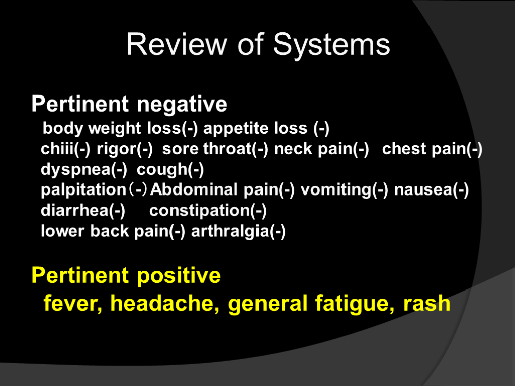 chiii(-) rigor(-) sore throat(-) neck pain(-) chest pain(-)