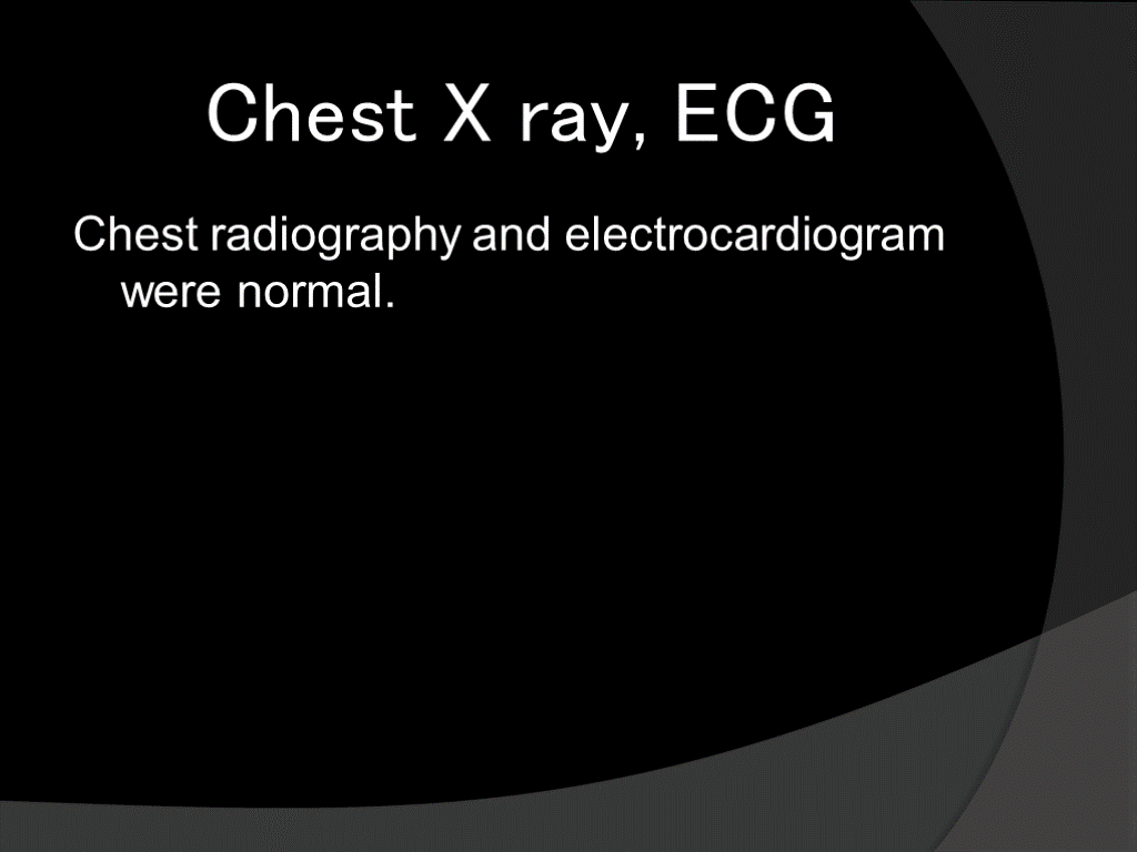 #13. Chest X ray, ECG Chest radiography and electrocardiogram were normal.