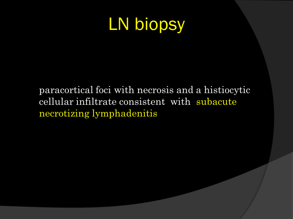 paracortical foci with necrosis and a histiocytic cellular infiltrate consistent with subacute necrotizing lymphadenitis