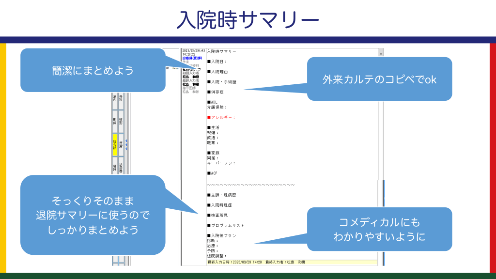 入院時サマリーと日々の記録の書き方