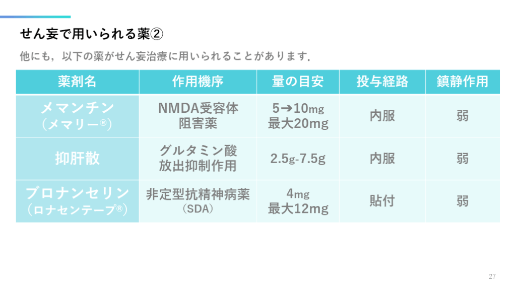 #27. 27 せん妄で用いられる薬② 他にも,以下の薬がせん妄治療に用いられることがあります.