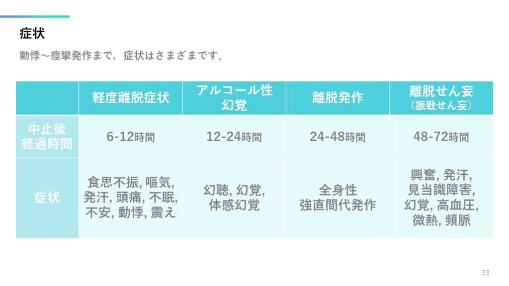 #35. 35 診断 下記の4項目を満たしたら,アルコール離脱と診断されます.