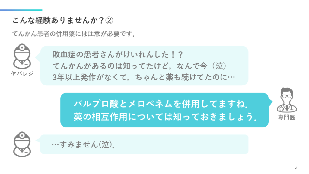 3年以上発作がなくて,ちゃんと薬も続けてたのに… ヤバレジ …すみません(泣). バルプロ酸とメロペネムを併用してますね.