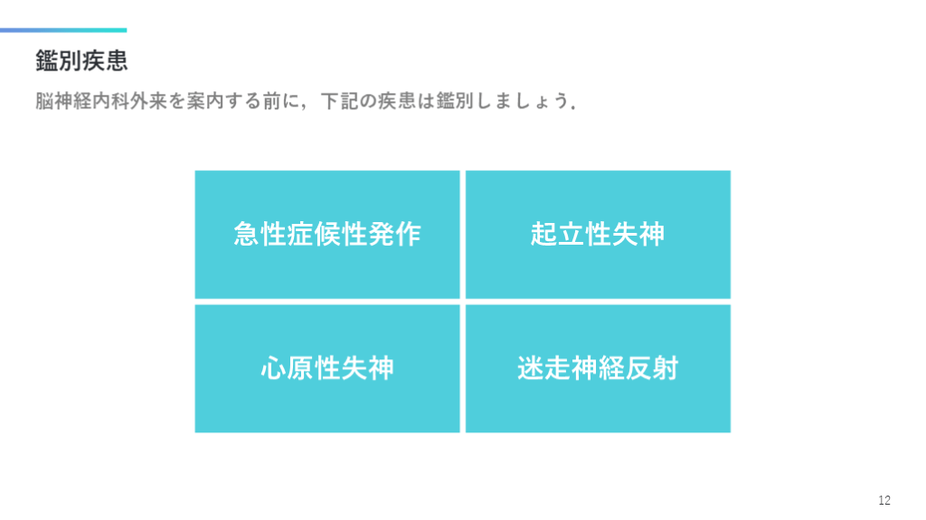 #13. 鑑別疾患 脳神経内科外来を案内する前に,下記の疾患は鑑別しましょう. 12
