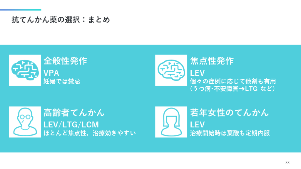 #32. 抗てんかん薬の選択:高齢者 高齢発症のてんかん患者は多く,ほとんどが焦点性発作です. 参考:Lancet 2020;395:735-48. 31 高齢者では初回発作後から治療開始を考慮